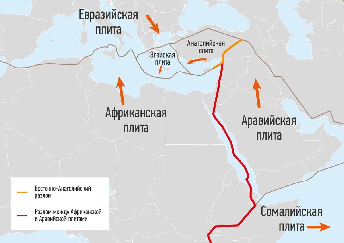 Ключевым фактором является Анатолийская микроплита. Турция – это не монолитная часть огромной Евразии, а относительно небольшая, самостоятельная тектоническая плита. И ее судьба трагична: она зажата, как в тисках, между колоссальными литосферными гигантами. С юга на неё мощно напирает Африканская плита, неуклонно движущаяся на север и погружающаяся под Евразию. С юго-востока не менее сильное давление оказывает Аравийская плита, которая также врезается в Евразийский массив. Массивная Евразийская плита служит жесткой преградой на севере.