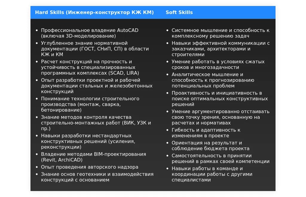 Адаптация раздела "Навыки" для инженера-конструктора (КЖ КМ)