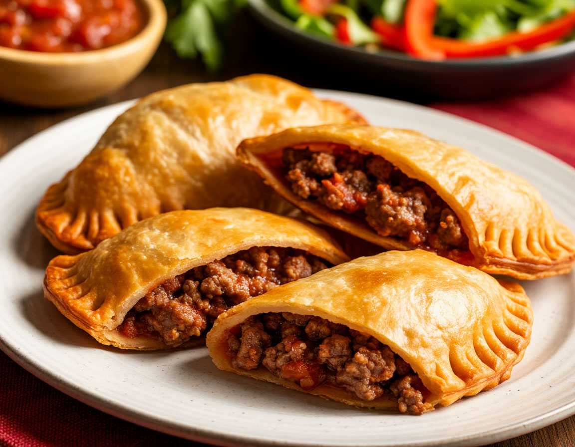 Секреты Аргентинских Пекарен: Нежные Empanadas de Carne с ароматной начинкой из говядины и сыром. Это простое, но необычайно вкусное блюдо подарит вашему дому тепло и уют аргентинских традиций. Попробуйте приготовить эмпанадас дома — и почувствуйте настоящий вкус далекой солнечной Аргентины! Тесто: Начинка: