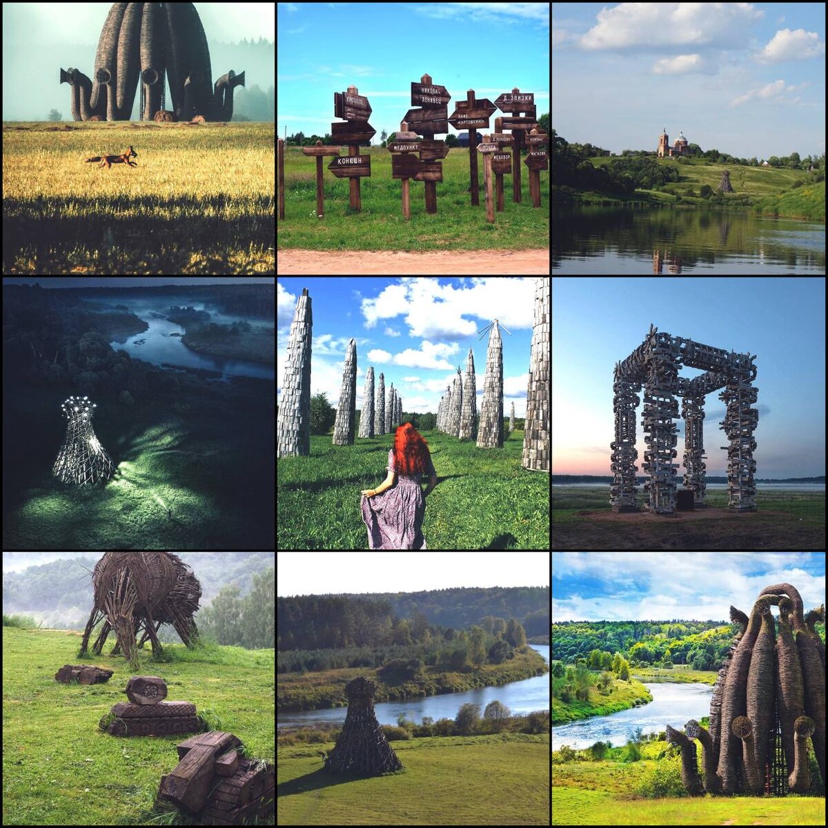 💡 Рубрика ‘’Путешествуйте с нами’’ 🌳 Арт-парк "Никола-Ленивец" 📍Калужская область, сельское поселение Угорское, Дзержинский район. координаты 54.759455, 35.606037 🐕Недалеко от Московской области расположился удивительный арт-парк «Никола-Ленивец» в Калужской области. Крупнейшая в Европе галерея под открытым небом. На 650 гектарах полей и лесов соседствуют более 60 арт-объектов, созданных мировыми художниками. ✔️ТОП-5 объектов, которые нельзя пропустить: ➡️"Вселенский разум"- Гигантский "мозг" из деревянных балок с зеркалами, символизирующий связь технологий и природы. Внутри — лабиринт отражений. ➡️"Мавзолей мечты"- 29-метровая башня из переработанного мусора, увенчанная пластиковыми пальмами — ирония над потребительством. ➡️"Ротонда"- Круглая постройка с 21 дверью, снятой с заброшенных домов. С крыши — вид на бескрайние поля. ➡️"Угруан"- 27-метровая "живая картина" из лозы, напоминающая собор Руана. Меняет цвет в лучах заката. ➡️"Красный лес"- Алый мост через овраг, контр