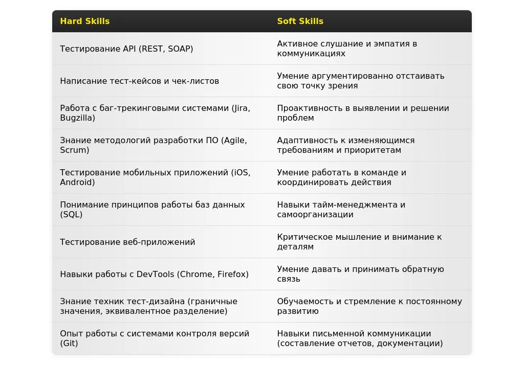 - На какие качества делать акцент: Внимательность к деталям, аналитическое мышление, умение четко формулировать мысли, знание основ тестирования.