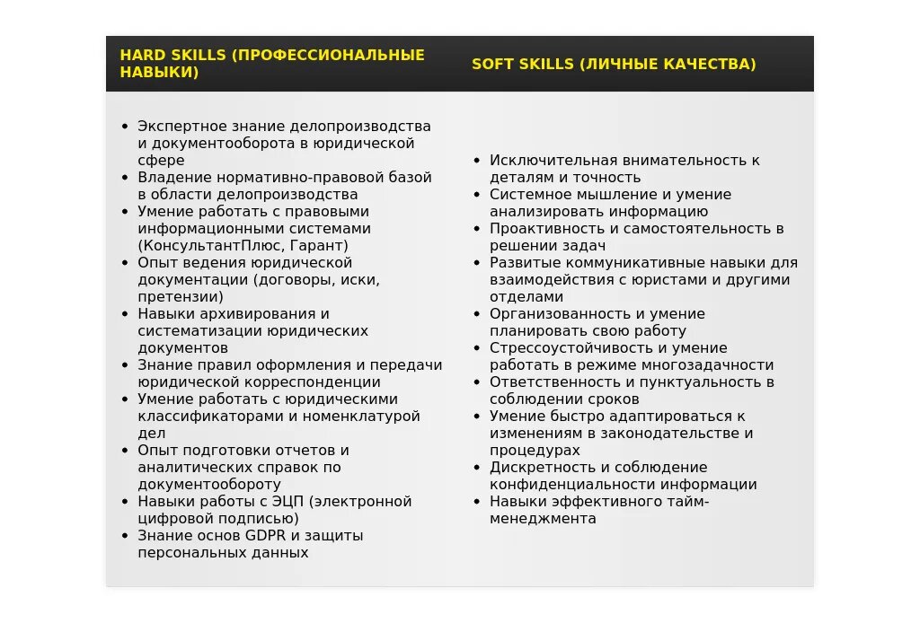 - Рекомендации по описанию ключевых навыков и обязанностей, востребованных в юридической среде;