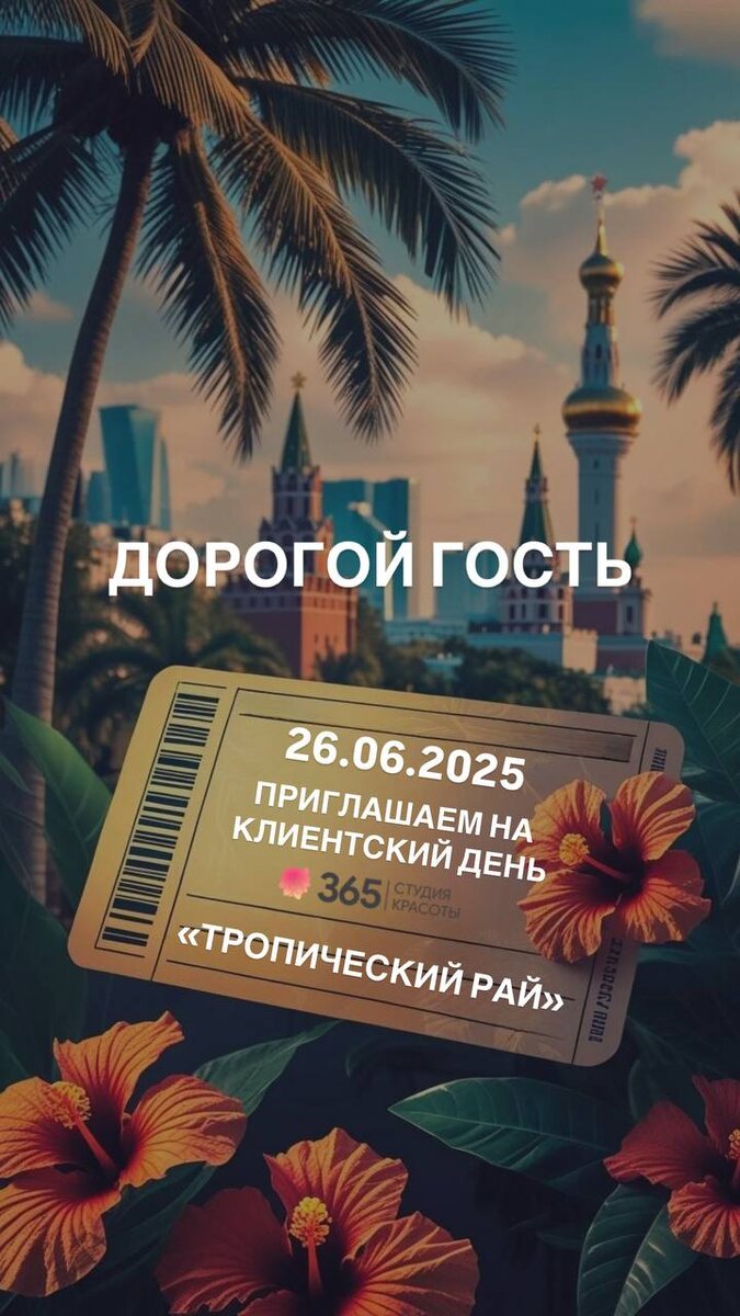 Билет на этот остров не продаётся в турагентствах... Но он ваш – 26 июня в студии красоты 365 вас ждут тропическая атмосфера с райским удовольствием 😊 Забронировать место можно любым удобным способом: ❤️ Сообщение в Whats'app https://wa.me/79663654477 ❤️ По телефону +79663654477 ❤️ Онлайн запись https://n286444.yclients.com/
