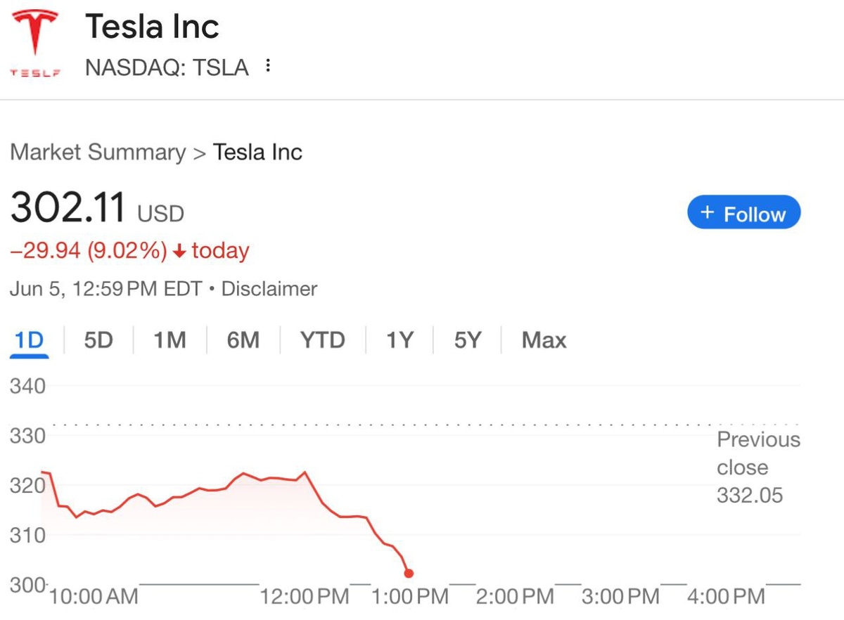 Tesla stock PLUNGES amid Trump/Elon fallout