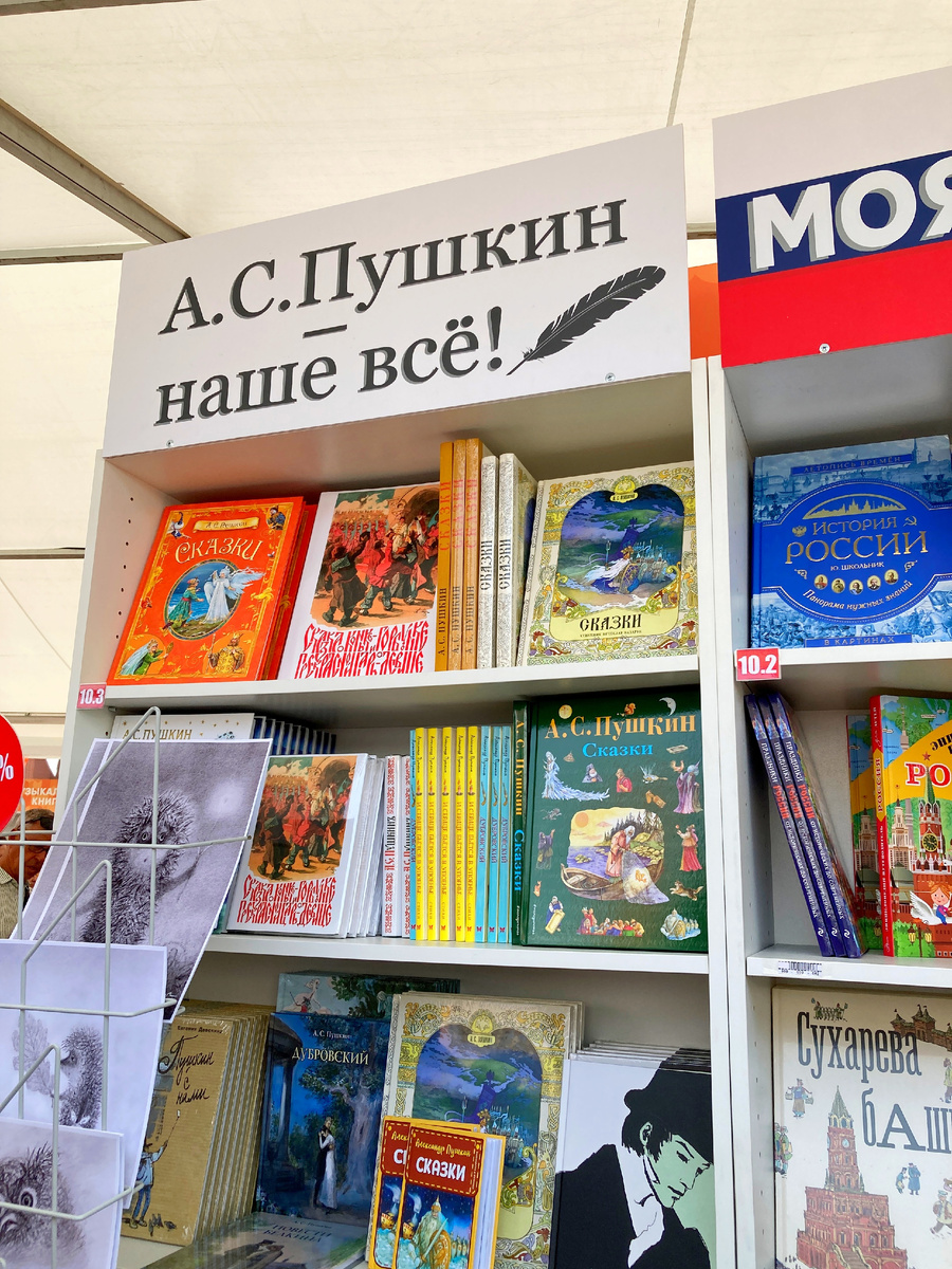 Пушкин… Сегодня на Красной площади Москвы он будто рядом. Взгляните пристальнее: «Не он ли у книжного прилавка в толпе читателей? Свободный и порывистый, охваченный единым порывом праздника русского духа, русского слова!» Невольно на память приходят вспоминания о встрече с Пушкиным на Святогорской ярмарке в 1825 году Ивана Лапина, сына местного купца Игната Лапина: «… и здесь имел счастье видеть Александра Сергеевича, господина Пушкина, который некоторым образом удивил странною своею одеждою, а например: у него была надета на голове соломенная шляпа, в ситцевой красной рубашке, опоясавши голубою ленточкой, с железною в руке тростию…» Сегодня, как никогда, я хочу лицом к лицу встретиться с ним, обнять его, сделать с ним хотя бы несколько шагов по брусчатке! Красная рубаха… Вот не он ли говорит с Петербургским издателем? Нет!.. Конечно же, это он у прилавка «Древности Севера» листает стихи Батюшкова!.. Надо успеть за ним! Повторяю почему-то: «Родная одежда сопутствовала поэту всю жизнь: