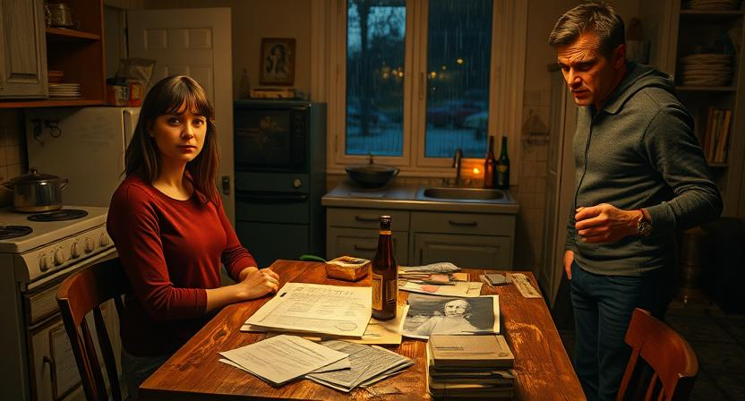 Катя сидела за старым кухонным столом, который они с Максимом купили на барахолке в первый год брака, и методично перебирала документы, принесенные с работы. Желтый свет настольной лампы падал на разложенные бумаги, создавая уютный островок в полутемной кухне. За окном моросил октябрьский дождь, и капли медленно стекали по стеклу, словно слезы.
