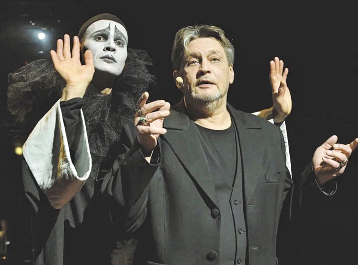 А написать есть о чём. Спектакль, не удививший меня собственно содержанием, порадовал его - содержания исполнением. Во-первых, Александр Домогаров не стал примерять на себя облик легендарного шансонье. В спектакле он выступает в роли рассказчика. Лишь раз он надевает на себя маску Пьеро, в самом финале. А визуально образ Александра Николаевича Вертинского, но не прямо в лоб, а, как сказали бы художники, лёгкими мазками, создаёт Андрей Кислицин, артист пластического жанра. И это придает спектаклю какой-то особый шарм, делая его непохожим на другие.