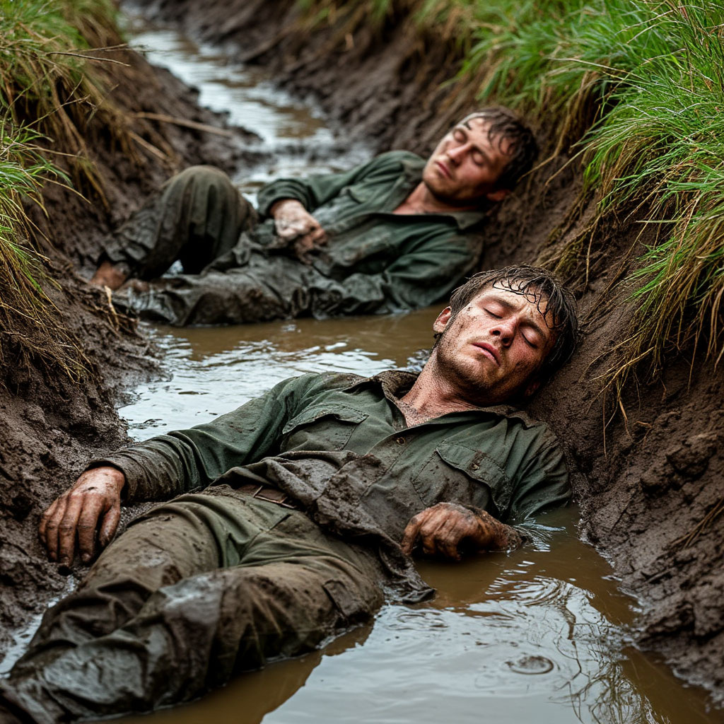 Николай открыл глаза. Он лежал на дне глубокой воронки от снаряда, а над головой было ясное летнее небо. В ушах стоял нескончаемый шум, который что есть мочи давил на виски. Солдат с трудом смог приподнять голову. Земля забилась в глаза и не позволяла нормально осмотреться. Поэтому он не сразу увидел в яме силуэт второго человека. Коля нащупал правой рукой флягу с водой и промыл глаза. Его левую руку в области предплечья пронзала острая боль. Он понял, что ранен. Он попытался разорвать зубами рукав гимнастерки, чтобы осмотреть рану, но увидел его. В воронке сидел немец лет 18-20 и смотрел на него испуганными глазами. У него в руках была зажата винтовка, но ее дуло было опущено в землю. Николай плохо разбирался в немецких званиях, но подумал, что фриц был рядовым. Он попытался нащупать в голенище сапога армейский нож, но его там не оказалось. И вспомнил, что в пылу рукопашного боя метнул нож в здорового немца. Вряд ли он попал, так как во время учений успешно выполнял только одну попытк