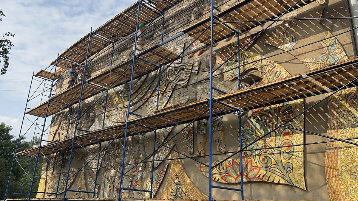 В Володарске приступили к восстановлению редкого мозаичного панно "Народное искусство" - объекта культурного наследия 1978 года