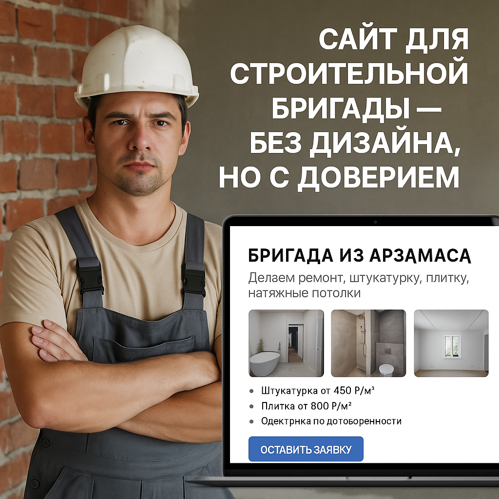 Но как сделать так, чтобы клиенты находили именно вас, а не «фирму с красивым сайтом, где потом всё делают студенты»? Ответ: честный, простой и рабочий сайт, где не нужен навороченный дизайн — главное — доверие и понятность. Бригада из Арзамаса.