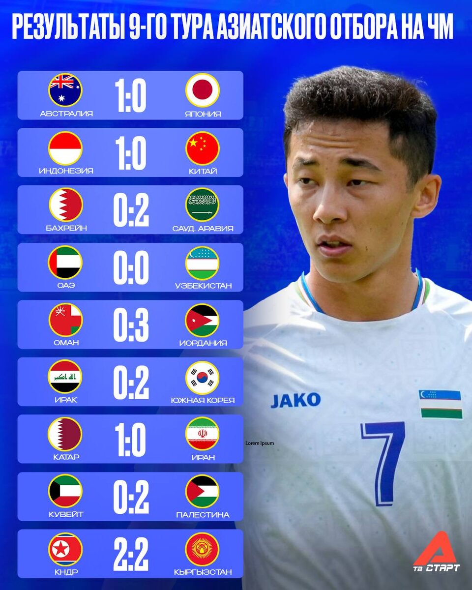 📊🌏 Итоги девятого утра азиатского отбора на ЧМ Сегодня узнали ещё трех участников мундиаля. Южную Корею, Узбекистан и Иорданию увидим на турнире в 2026 году. Приблизилась и Австралия к заветной цели – им нужно всего лишь не проиграть разгромно Саудовской Аравии 💪🏻 🛒 Наше приложение в Google Play 💙 Наше приложение в RuStore 🛒 Наше приложение в App Store