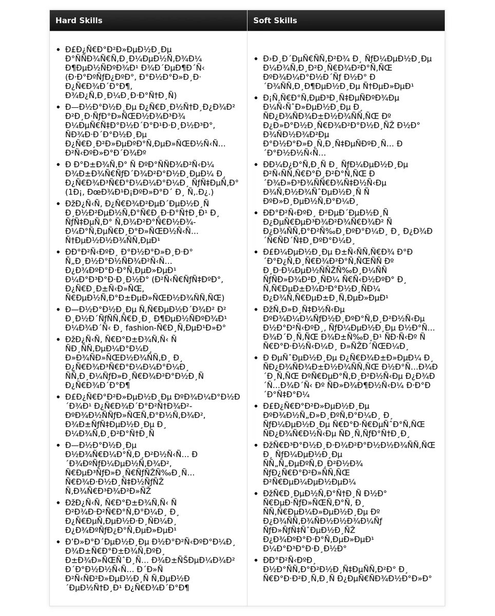 - Слишком общее описание:Пример: "Ответственный и коммуникабельный человек, быстро обучаюсь новому."