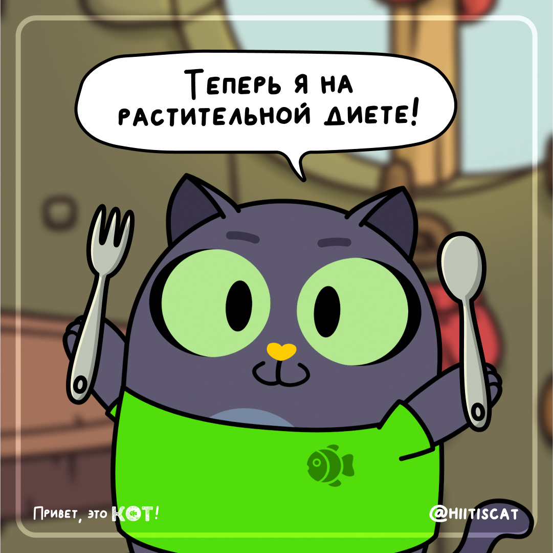 Напиши честно: сколько дней ты бы точно продержался на правильном питании?Кот — 0. Он считал, что «растительная диета» — это картошка фри