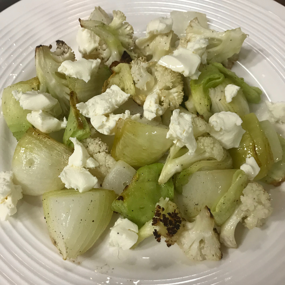 🔹50–70 г сыра фета 1️. Кабачки натрите тонкими ломтиками на тёрке-шинковке. Цветную капусту разберите на небольшие соцветия. Каждую луковицу нарежьте на 4–8 частей. 2️. Сложите всё в миску, полейте маслом, посолите, поперчите и хорошо перемешайте. 3️. Деревянные шпажки — их нужно 8–10 штук — на 20 минут оставьте в миске с прохладной водой.