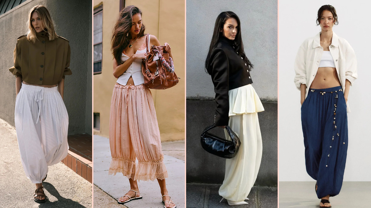 Гаремные брюки, или брюки-пеплум, или брюки-пузырь: интернет еще не решил, как назвать этот сарториальный феномен, но даже если он технически безымянный, это не меняет того факта, что этот фасон на пике популярности. В течение последних двух недель мы наблюдали в социальных сетях, как модницы дебютировали в своих моделях с широким низом, пропустив капри, брюки с бочкообразными штанинами, льняные брюки, шорты-бермуды и, да, джинсы-скинни. Очевидно, что люди хотят носить удобную одежду, которая в то же время может заявить о себе, и гаремные брюки отвечают обоим этим требованиям. Тренд на эти брюки появился в социальных сетях не так давно, в то время, как на подиумах он появился еще в сентябре прошлого года, когда Питер Мулье отправил моделей (включая Кендалл Дженнер) на подиум на показе Alaïa S/S 25 в брюках пастельных и нейтральных оттенков из джерси, тафты и других материалов с топами-бандо и сандалиями. Позже в том же сезоне в Париже Loewe и Chloé также представили гаремные брюки на