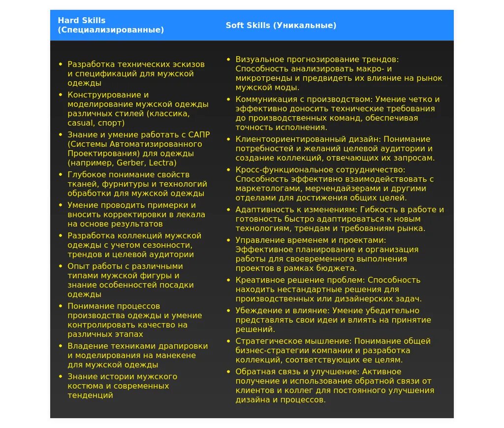 Адаптация раздела "Навыки" для дизайнера мужской одежды