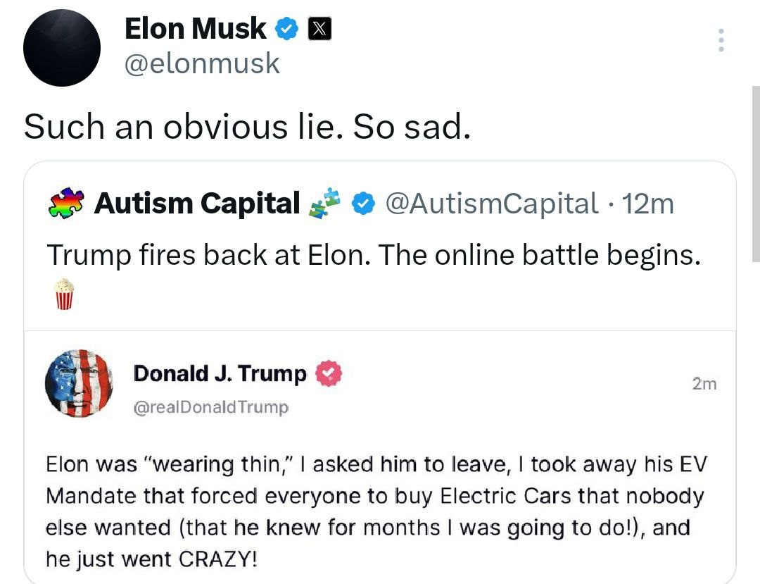 В ответ на пост Elon responds to Trump: 'an obvious LIE'