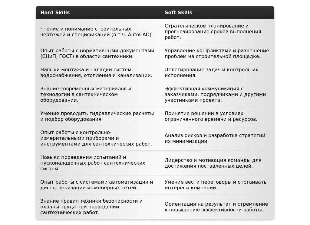 Если вы являетесь ведущим специалистом в области сантехнических работ, сделайте акцент на своей экспертизе, управленческих навыках и масштабе реализованных проектов. Важно показать, что вы способны решать сложные задачи, руководить большими командами и приносить значительную пользу компании.