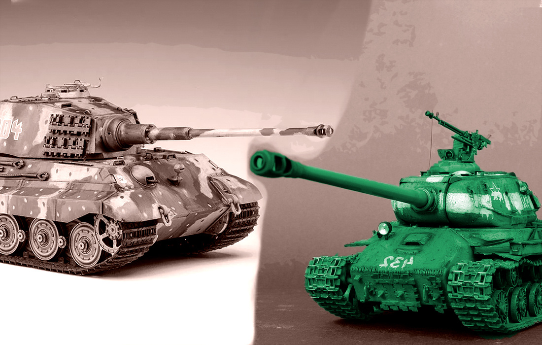 В заключительный период Второй мировой войны танковые подразделения Германии и Советского Союза получили в своё распоряжение машины, ставшие не только символами могущества своих армий, но и кульминацией развития тяжёлой бронетехники того времени.