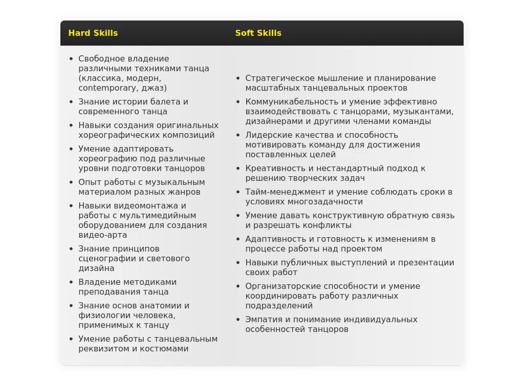 Адаптация раздела "Навыки" для хореографа-постановщика
