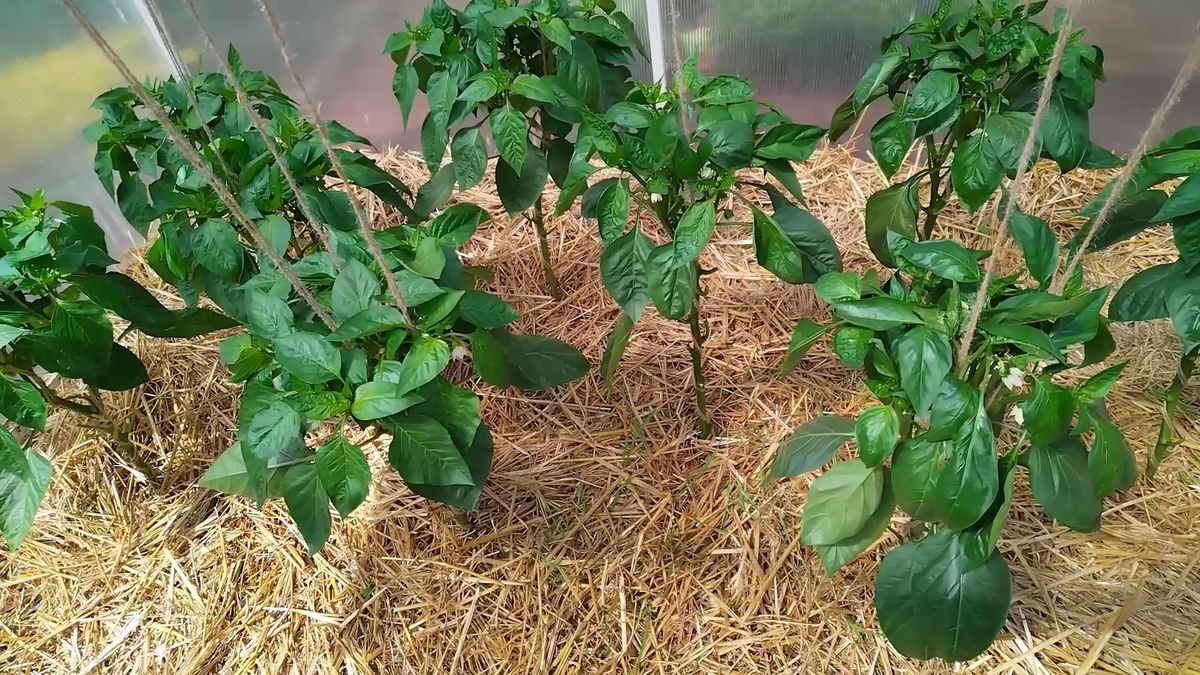Две недели после высадки в теплицу. Перец зацвел. Пора кормить!