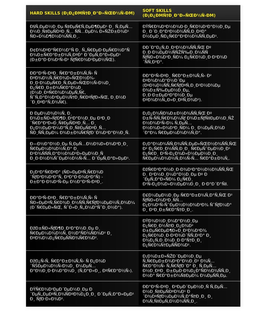 - Несоответствие опыта: Не указывайте в разделе "О себе" навыки и опыт, которых у вас нет.
