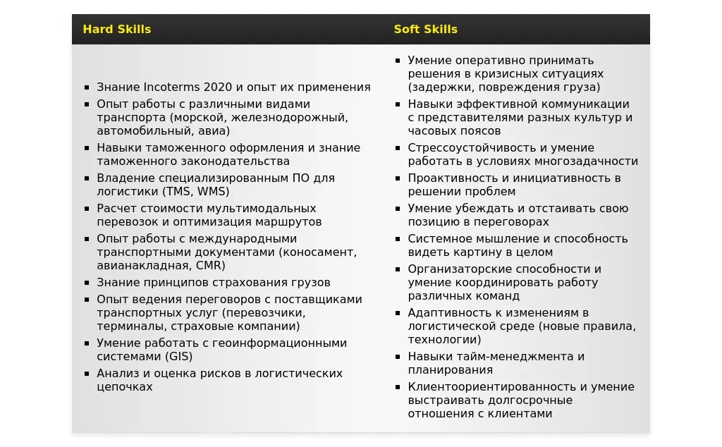 Адаптация раздела "Навыки" для специалиста по мультимодальным перевозкам