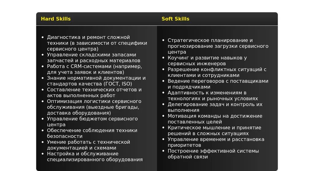 Ключевые навыки и компетенции, релевантные для позиции руководителя сервисного центра.