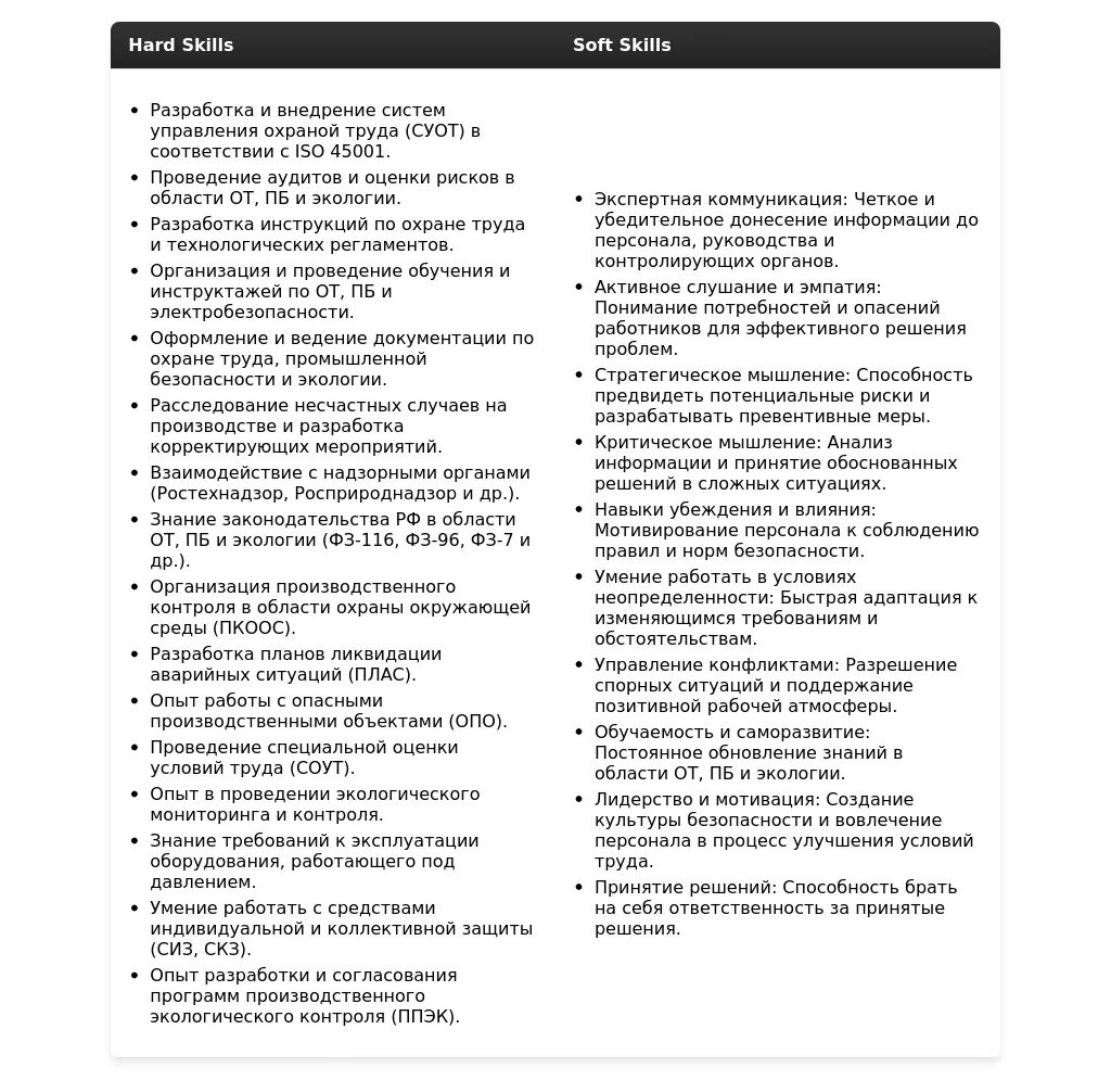 Адаптация раздела "Навыки" для специалиста по ОТ, ПБ и Э