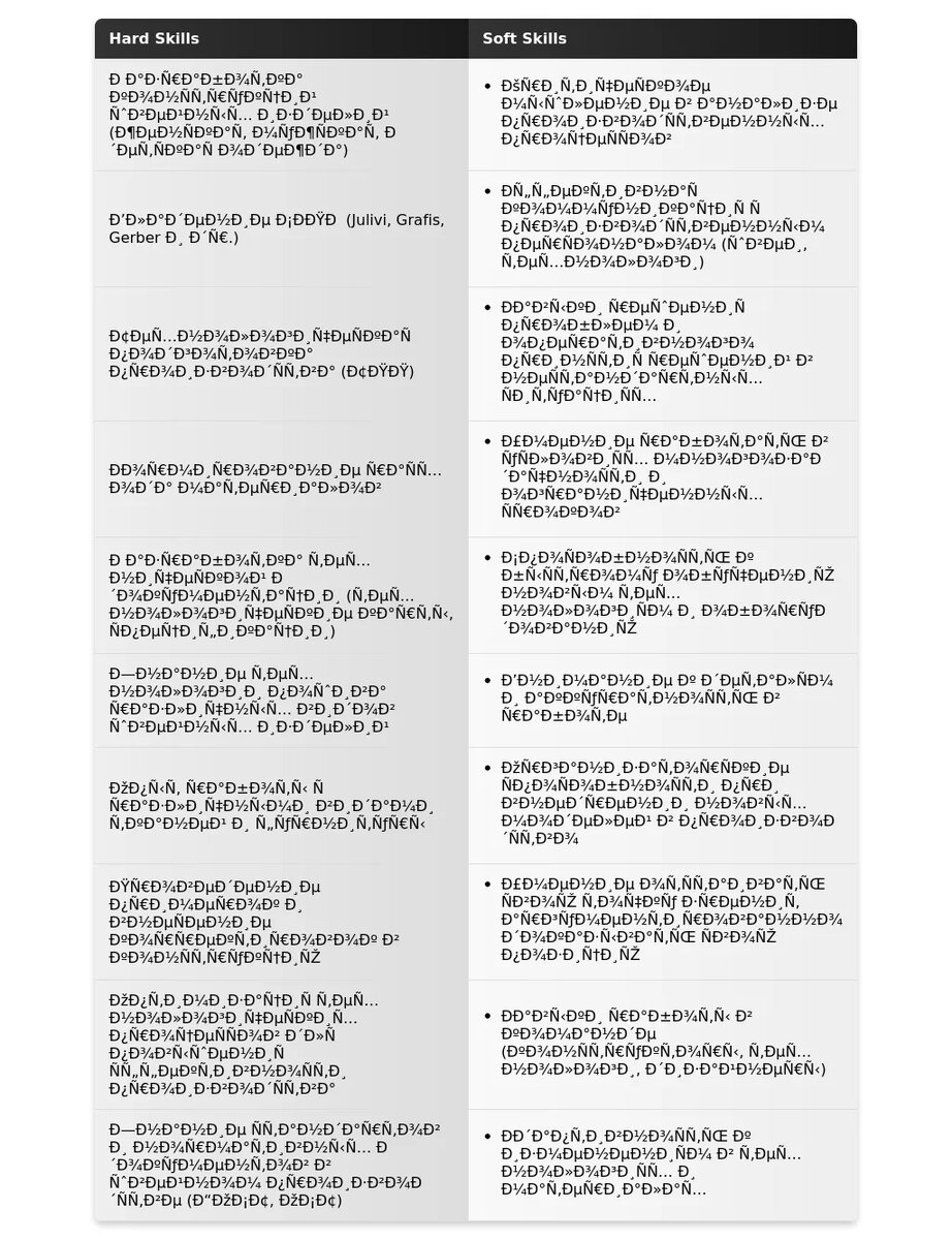 После: "САПР Grafis, САПР Julivi, конструирование женской одежды, технология швейного производства, составление технической документации, контроль качества."