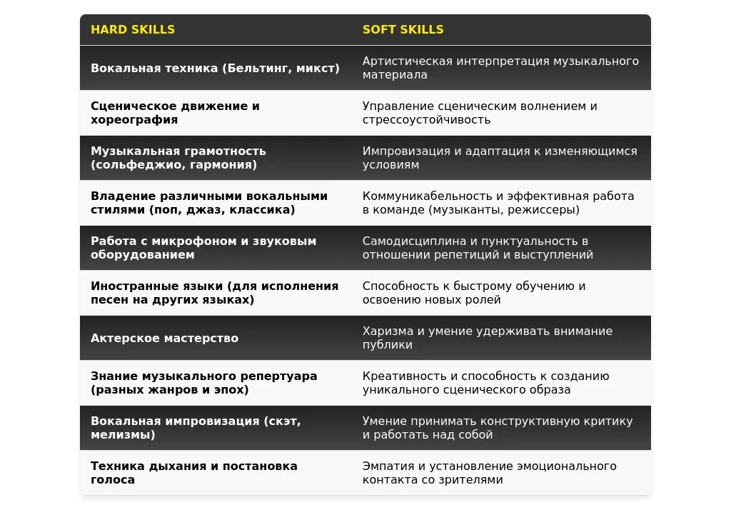 Адаптация раздела "Навыки" для артиста-вокалиста