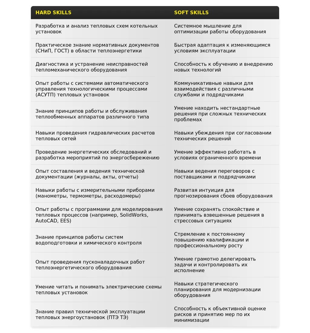 Список ключевых фраз для профессии "инженер по эксплуатации теплотехнического оборудования"