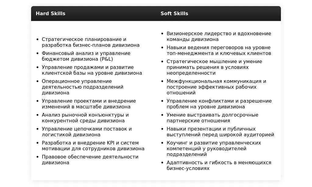 Ключевые фразы для профессии дивизионального директора: