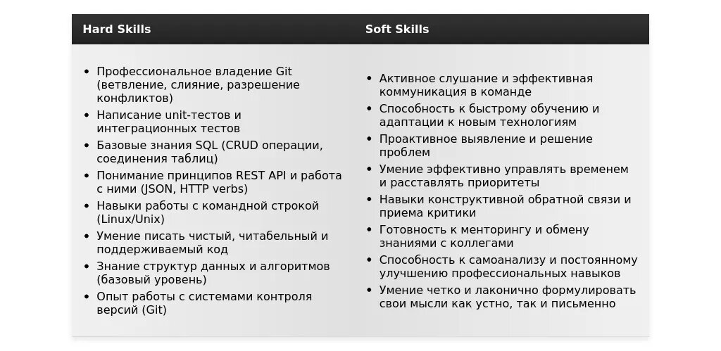 Адаптация раздела "Навыки" Junior Software Developer