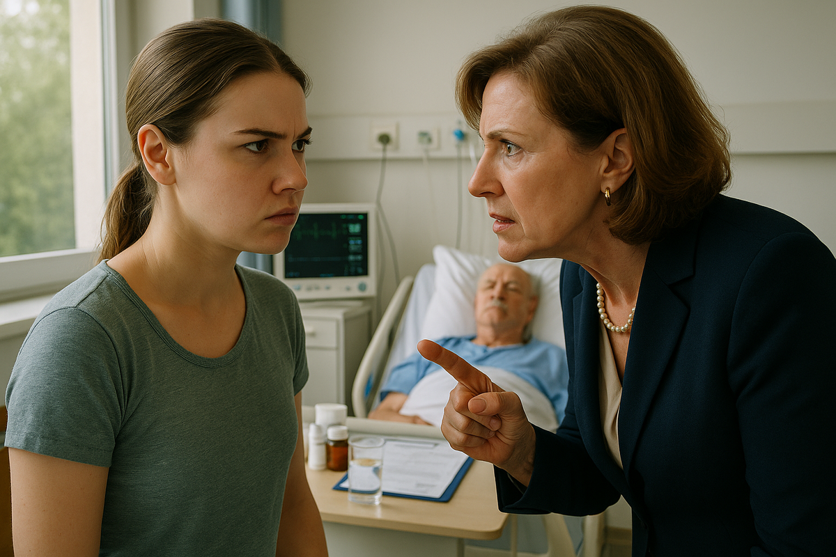 Галина Петровна молча прошла в палату и села у кровати дедушки. Ольга устроилась в кресле у окна. Между ними повисло напряжённое молчание.