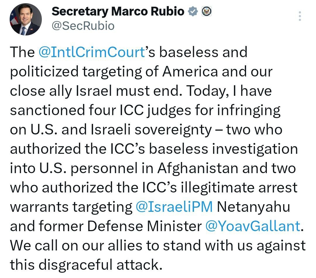 US sanctions 4 ICC judges for 'infringing on US and Israeli sovereignty' Rubio says 2 of them approved arrest warrants on Netanyahu in Nov last year Calls it a 'disgraceful attack'