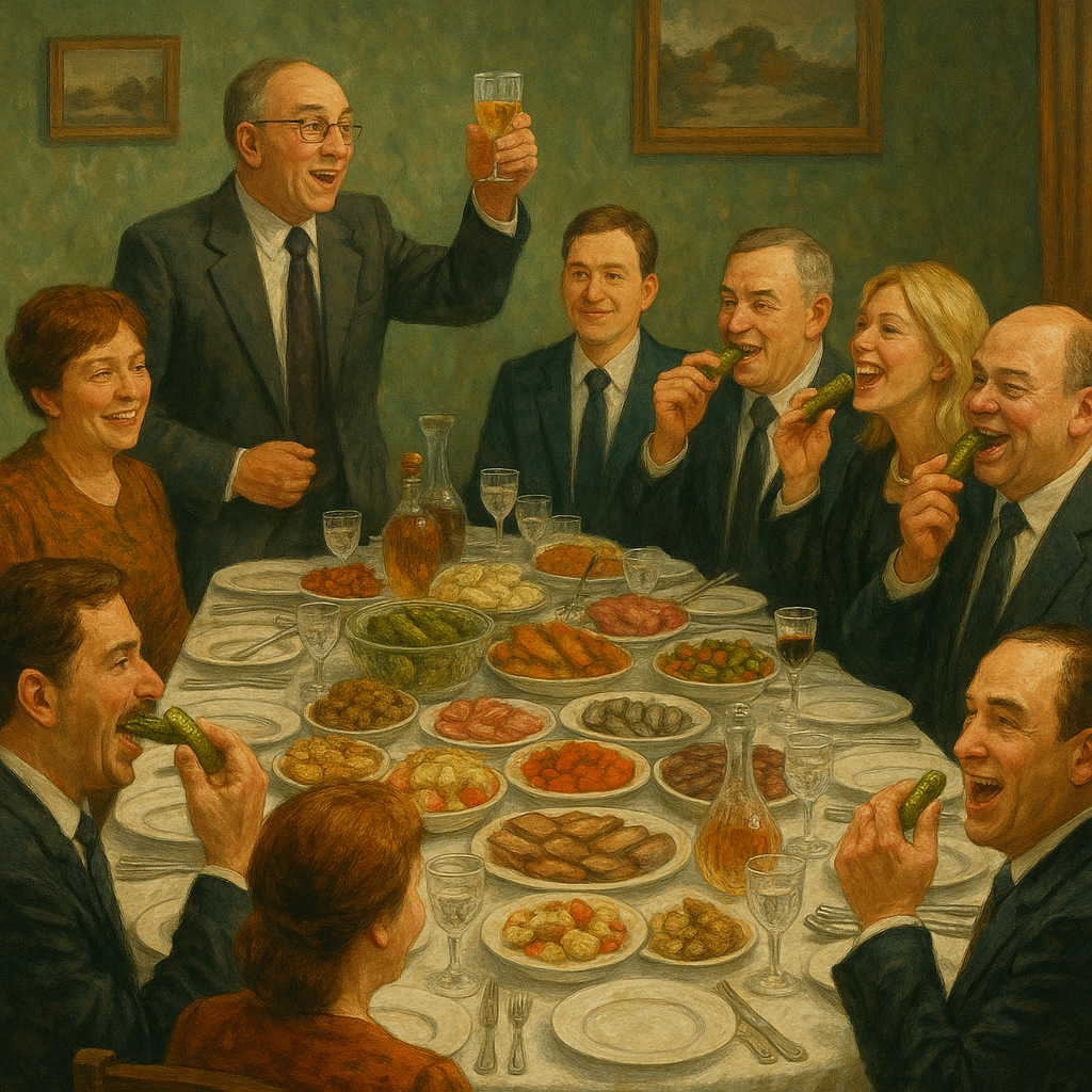 Петя вырос во вполне себе Петра, поступил после школы в институт, но понял, что не справляется; его проводили в армию и встретили обратно, в институте он восстановился, неожиданно скоро нашел себе невесту и ушел на её, невестину, территорию. Невеста оказалась не из простых - дочь заместителя министра, у нее и круг общения был соответствующий. Когда пришёл срок знакомить избранницу с родственниками, Петя страшно переживал. Дома, естественно, собирали застолье, да вот незадача - не хватало столовых ножей и одинаковых тарелок. Петю это тяготило. В его родном доме больших застолий не собирали, обходились стандартным набором из шести предметов, тут такой случай (сам замминистра! замминистрова супруга! прочие замминистровы родственники! ну и САМА, так сказать, дорогая сердцу замминистрова дочь), а приборы будто всем двором собирали. А всем двором и собирали – не у каждого в те годы на антресолях мейсенский фарфор для королевских приёмов своего часа дожидался. Пете эта посуда покоя не давала, как не давали покоя домашние разносолы, заботливо уложенные в хрустальные ёмкости – ну что за нелепость такая солёный огурец! Зачем все эти грибы, помидоры в собственном соку, селёдки? Можно ведь, наверное, как-то элегантно выйти из ситуации, подать, скажем, сухое вино и легкие закуски… Петя ничего не говорил ни маме, ни отчиму, но напряжение в воздухе росло с каждой минутой. «Совсем непростая, видать, девочка», - тихонько сказала мать отчиму, когда сын пошёл встречать невестину делегацию. «Другой-то не привёл», - ответил отчим и развел руками.