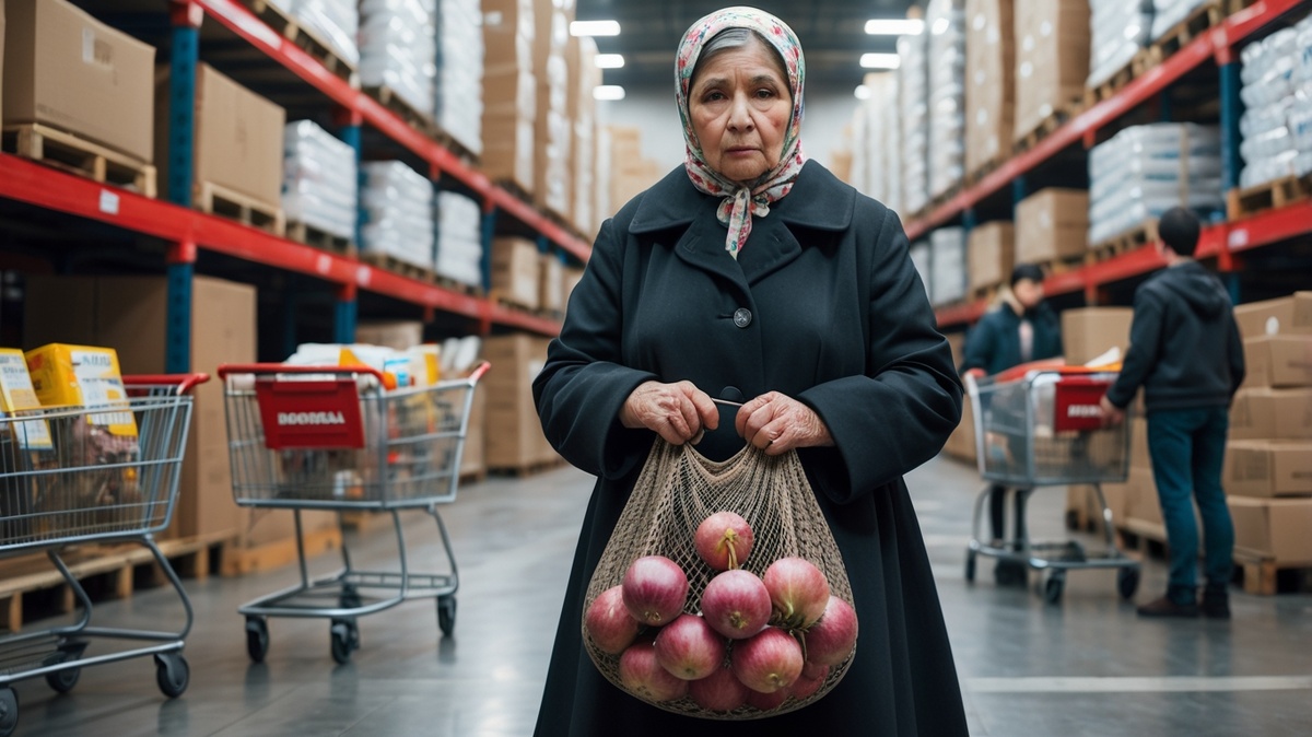 Она зашла в Костко — как в родной гастроном. Пуховик. Тапки. Глаза — как у разведчицы. На плече — авоська. Не эко-шоппер. Не бренд. Настоящая. Вязаная. Ещё из СССР. У неё была миссия. Я шёл за ней. Просто смотрел. Потому что она двигалась с уверенностью полковника в тылу врага. Картошку брала двумя пальцами. Колбасу — проверяла на звук. Сыр — нюхала, будто ищет предательство родины. Когда подошла к кассе, кассир сказал: — Sorry, we don’t allow personal bags. Она кивнула. И медленно начала выкладывать всё на ленту. Из авоськи. Как будто вытаскивает улики. Сначала гречка. Потом термос. Потом… три банки сгущёнки. Я не шучу. Пронесла. С гордостью. Охранник спросил: — This your membership card? Она выпрямилась. И сказала: — Я гражданка. Я имею право на всё. Даже на авоську. Он замолчал. Потому что понял: спорить с этой женщиной — всё равно что спорить с Брежневым. Я догнал её на парковке: — Бабушка, можно с вами сфоткаться? Она ответила: — Я не бабушка. Я — система. Я пережила купоны, расп