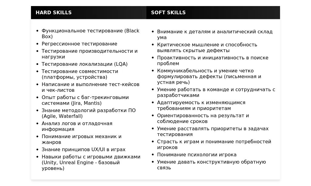 - На какие качества и навыки делать акцент: Внимательность к деталям, аналитические способности, умение работать в команде, знание принципов тестирования, интерес к играм.