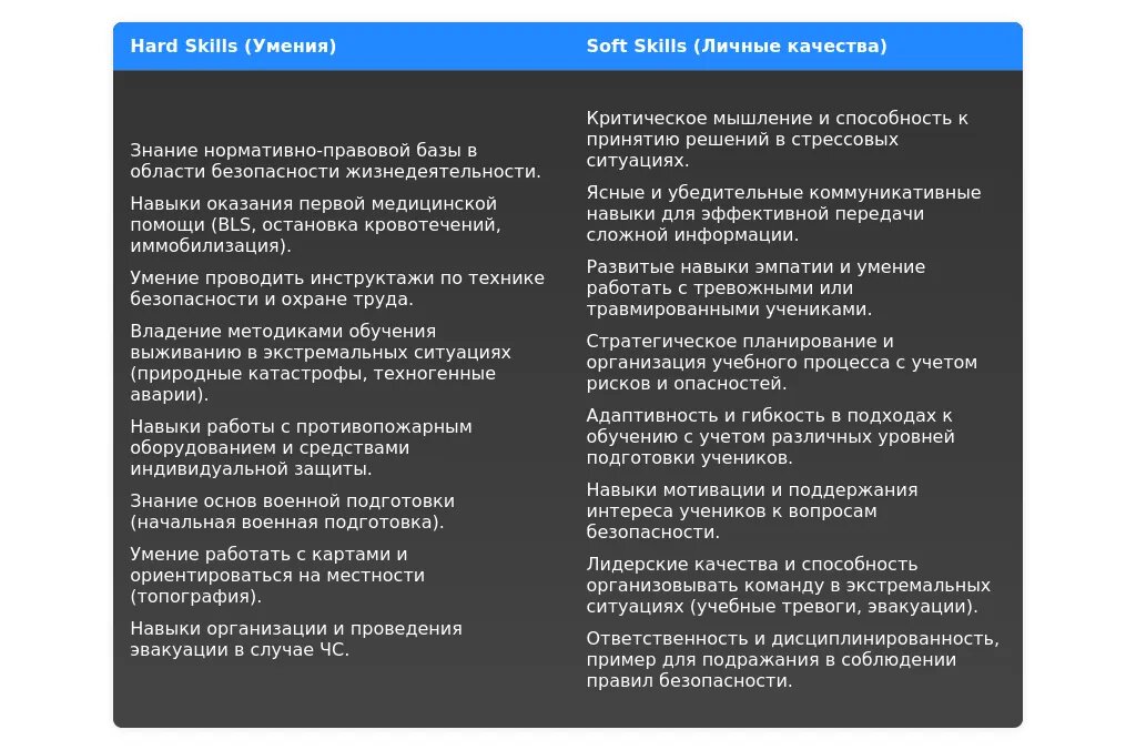 Ключевые навыки и компетенции, релевантные для позиции учителя ОБЖ.