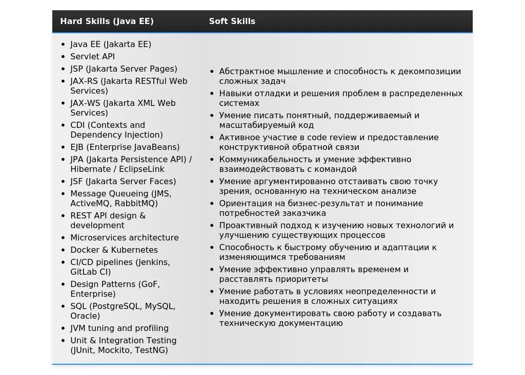 - Senior Java EE Developer – для опытных разработчиков, способных решать сложные задачи и руководить командой.