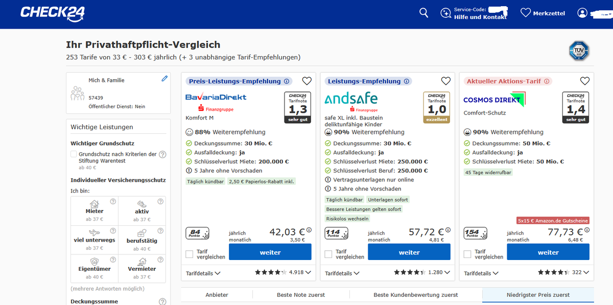 На скрине, для примера, годичная стоимость Privathaftpflichtversicherung с 1 ребёнком. Конечно, условия стали более жёстче, чем я делал эту страховку более 20 лет назад, и максимальна сумма компенсации стала прилично меньше. На любые вопросы, которые возникнут после прочтения статьи, я охотно отвечу