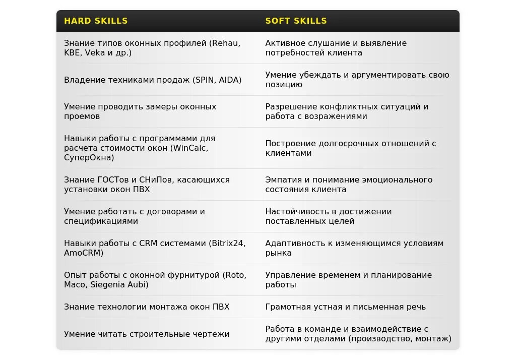 Анализ требований вакансии менеджера по продаже окон ПВХ