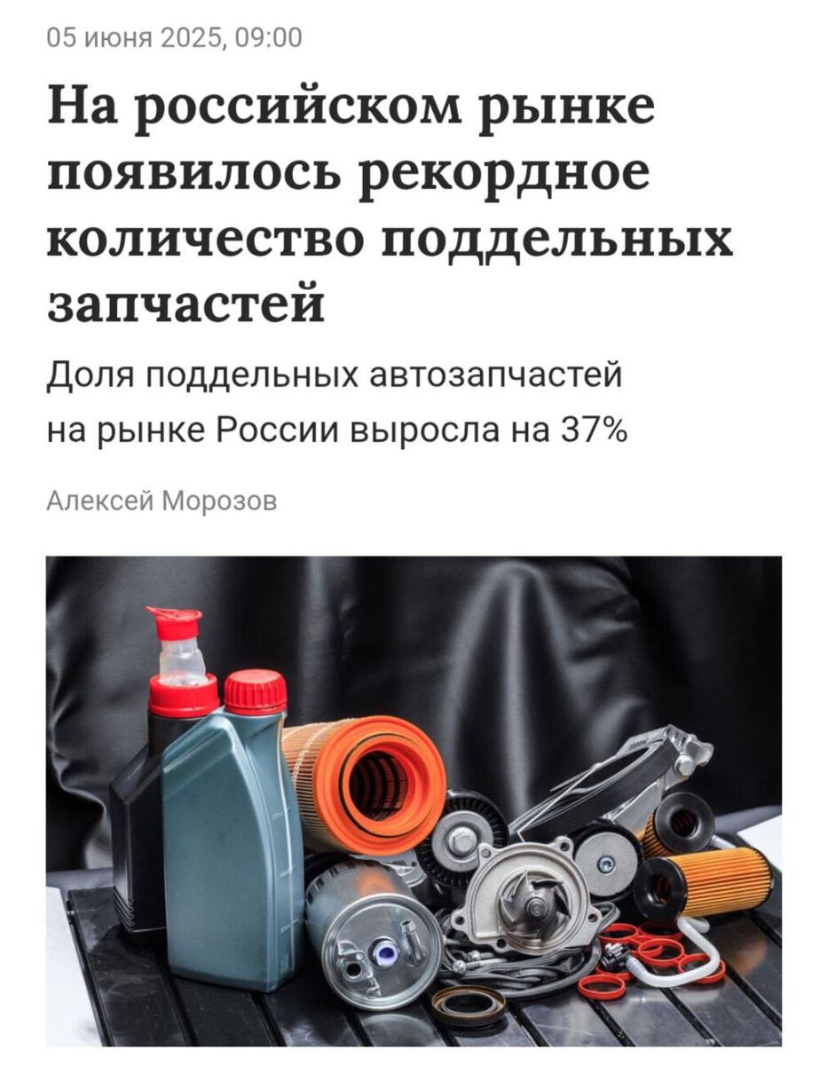 Россию наводнили поддельные запчасти и машинное масло. Доля таких товаров за последние три года выросла на 37%. Чаще всего подделывают масла, свечи, фильтры и детали тормозов. Главная причина — уход многих иностранных брендов из России 👉🏻Новости №1 в Ростове 💌Прислать новость/фото
