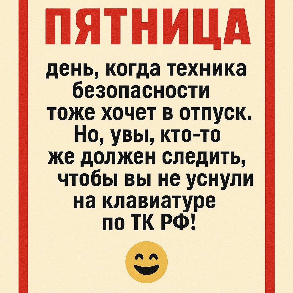 Система охраны труда не спит – чтобы вы могли спать спокойно (но только после смены). P.S. "Если заметили, что техника безопасности 'уснула' – это не повод расслабляться, а сигнал срочно пить кофе!" ☕😴 #охранатруда #юмор