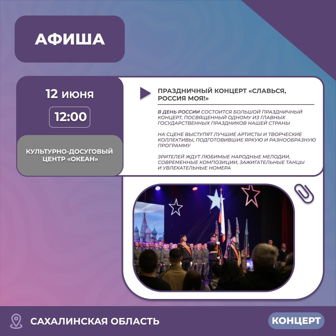 📢 Дорогие жители и гости Сахалинской области! 🎭 На предстоящей неделе вас ждут интересные мероприятия, среди которых красочные концерты, классические постановки в яркой и современной интерпретации, а также увлекательные истории для самых маленьких зрителей. #сахалинскаяобласть #сахалин #афишамероприятий