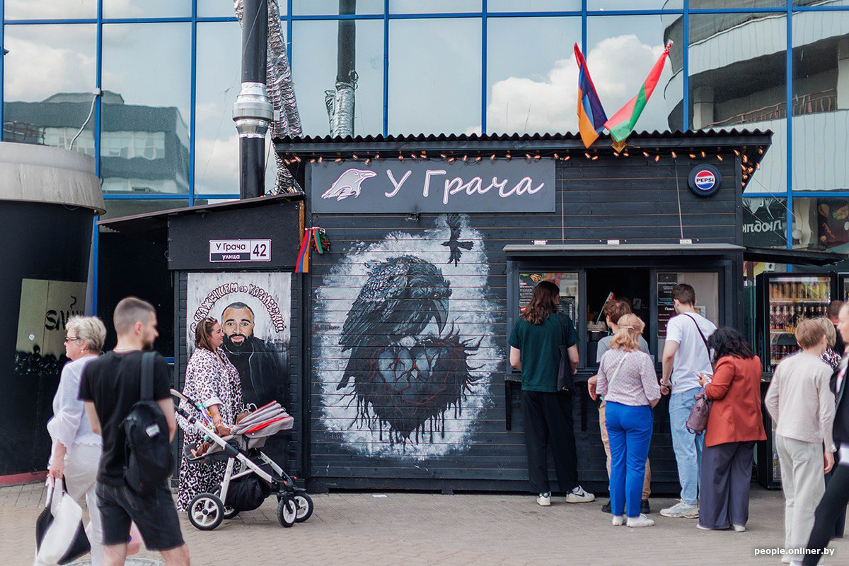 С хозяином точки мы встретились в тот же день на Комаровке. Грачья Мнацаканян говорит, что родился в Армении, жил и работал в Одессе, а в 2022 году перебрался на родину супруги — в Беларусь.