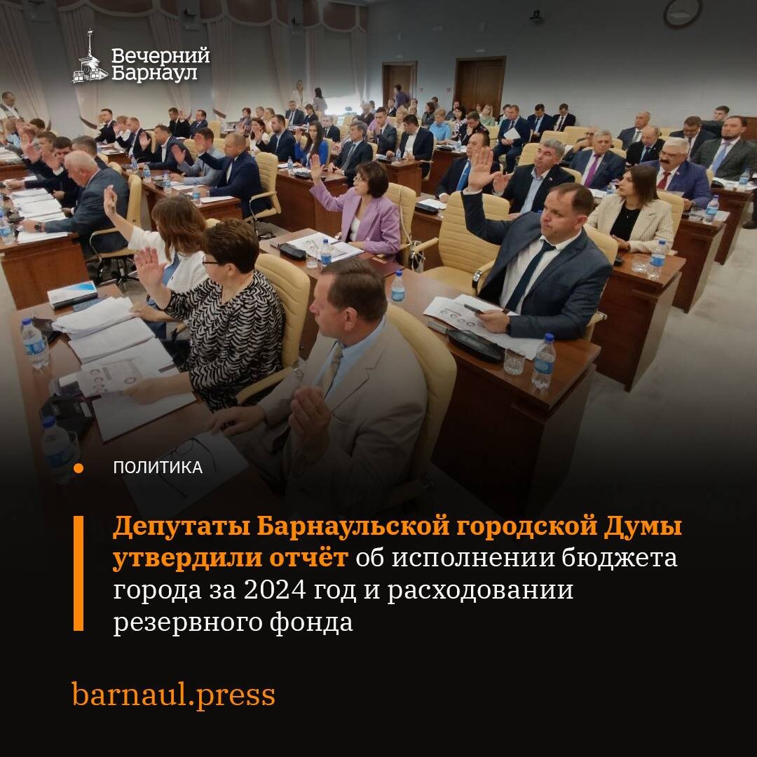 6 июня на заседании Барнаульской городской Думы рассмотрели отчёт об исполнении бюджета города за 2024 год и расходовании резервного фонда