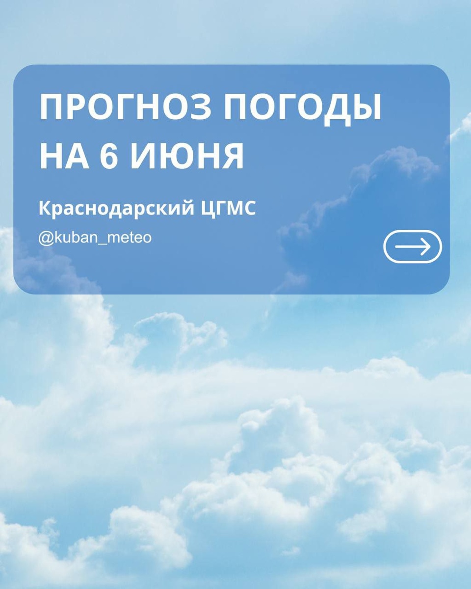 ☀️ Прогноз погоды в Краснодарском крае на 6 июня.