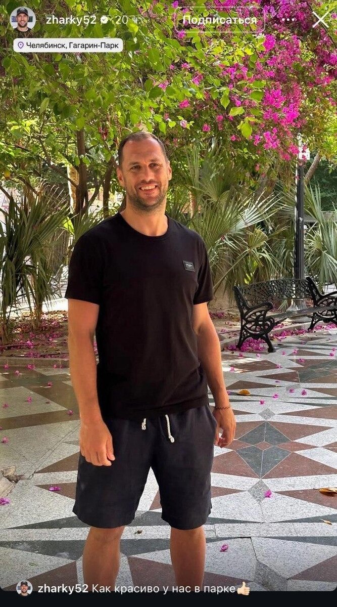 🟠Форвард «Трактора» Владимир Жарков фото из отпуска выложил с геотегом «Парк Гагарина» и прокомментировал его так: «Как красиво у нас в парке». Правда, находится нападающий скорее в испанском Аликанте — на площади Габриэля Миро.